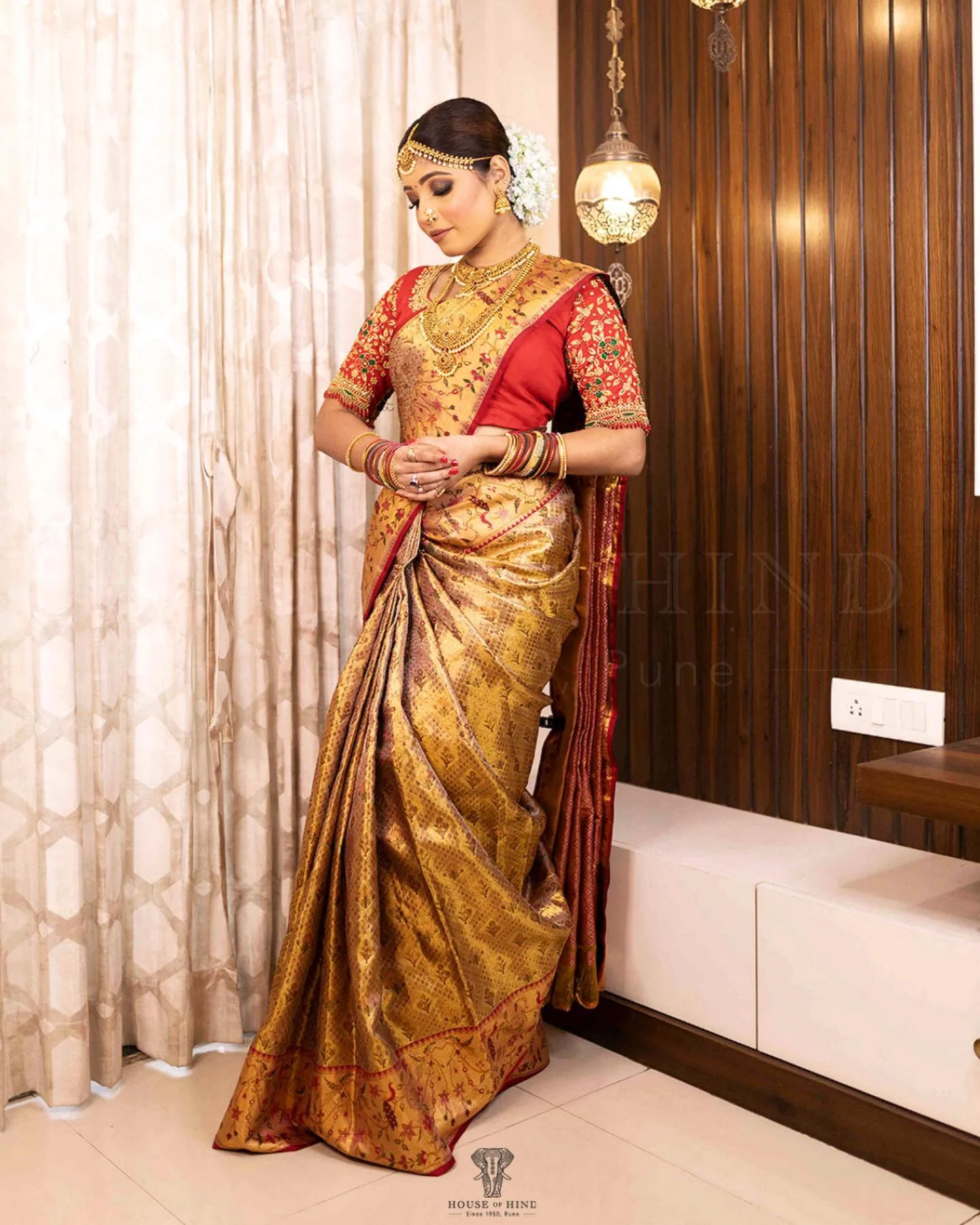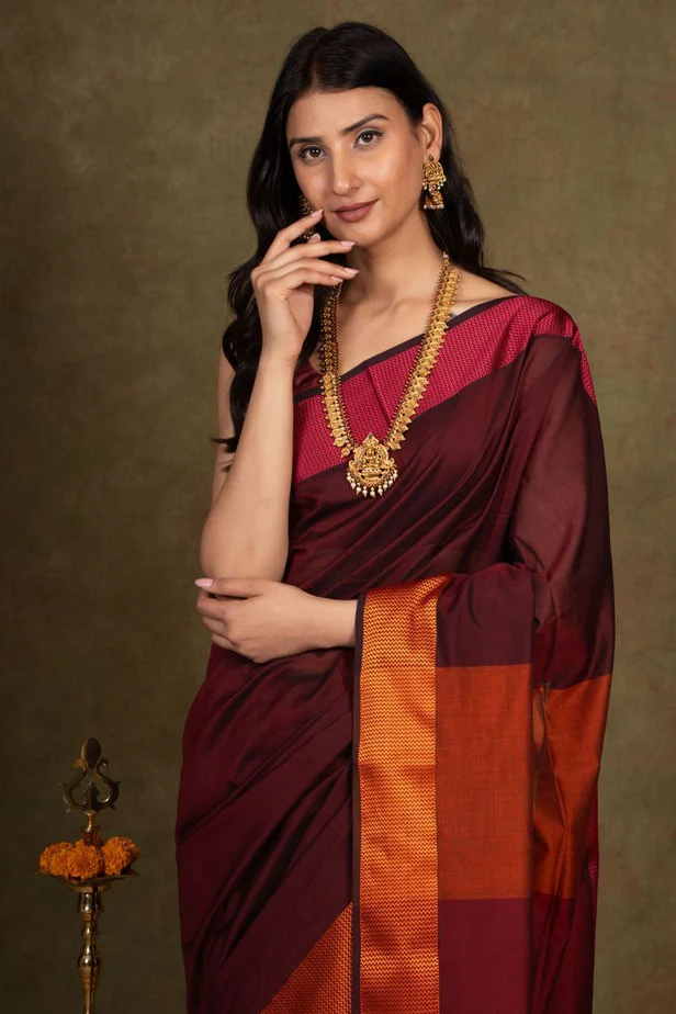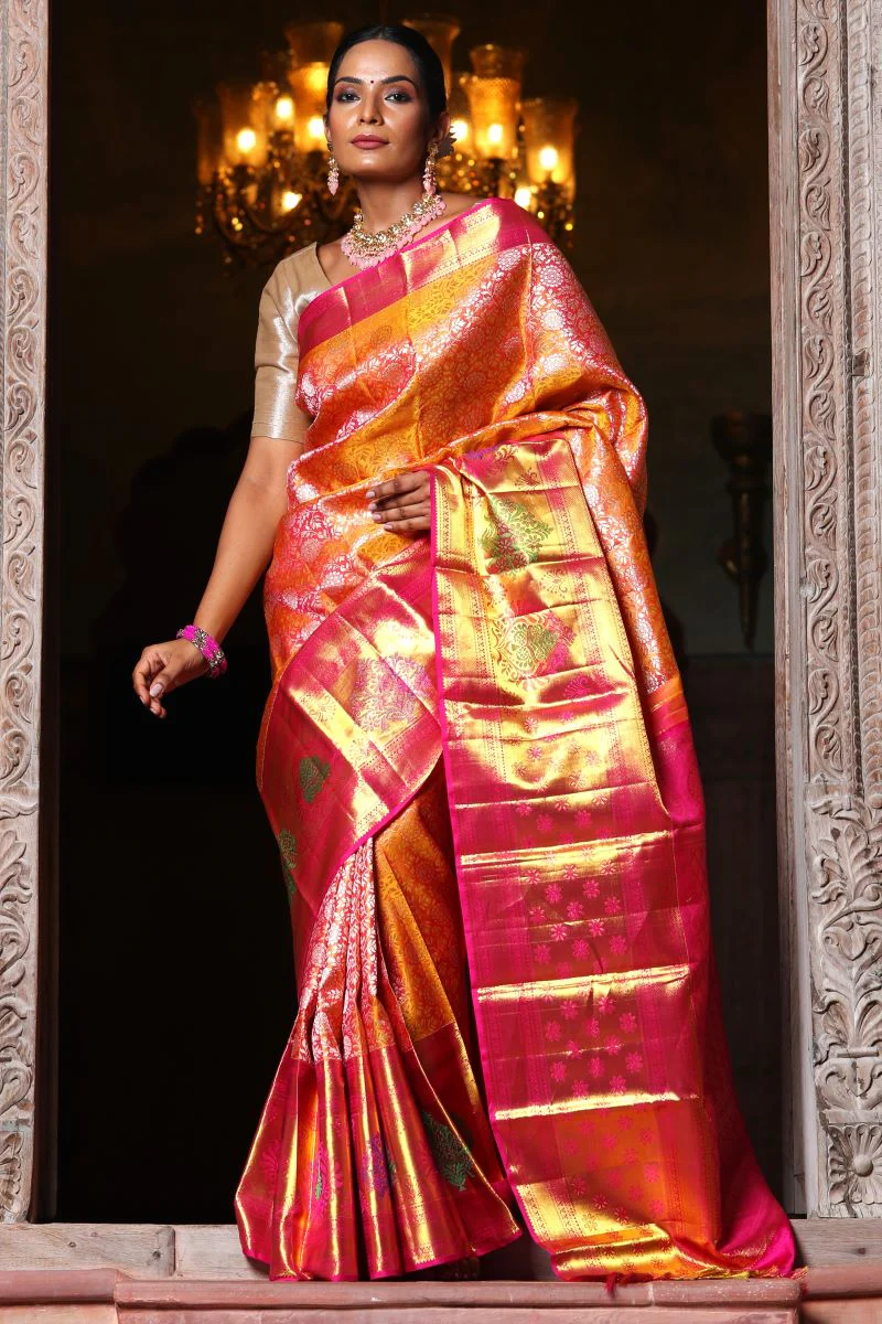 Traditional Kancheepuram/Kanjivaram silk sarees at Kanchipuram Silk House are enamoured with rich texture and refined colours.