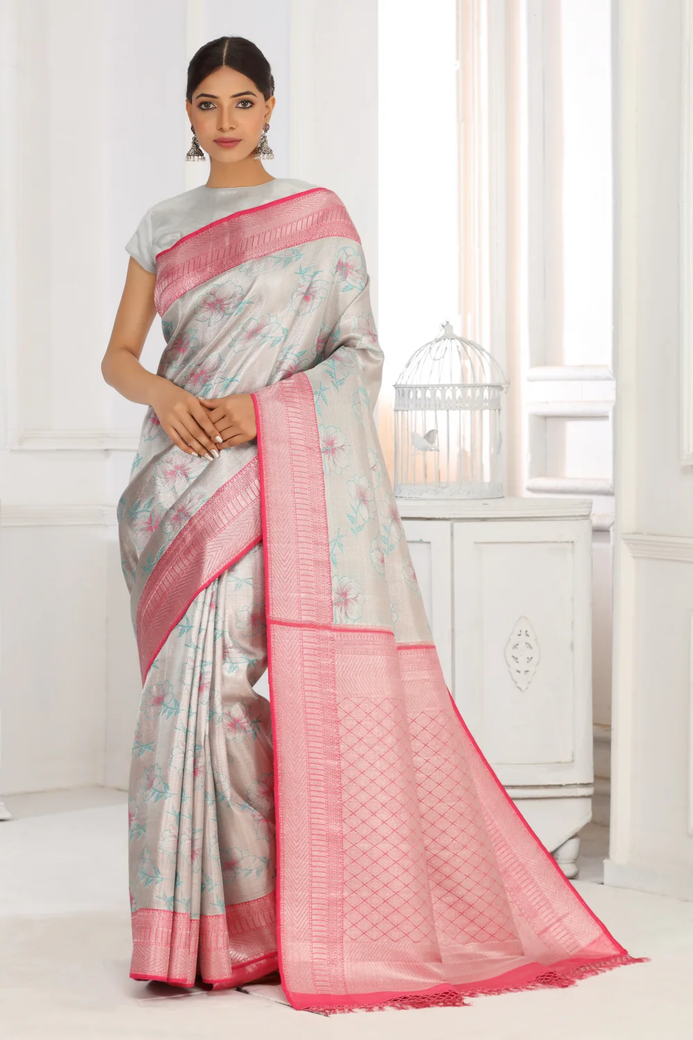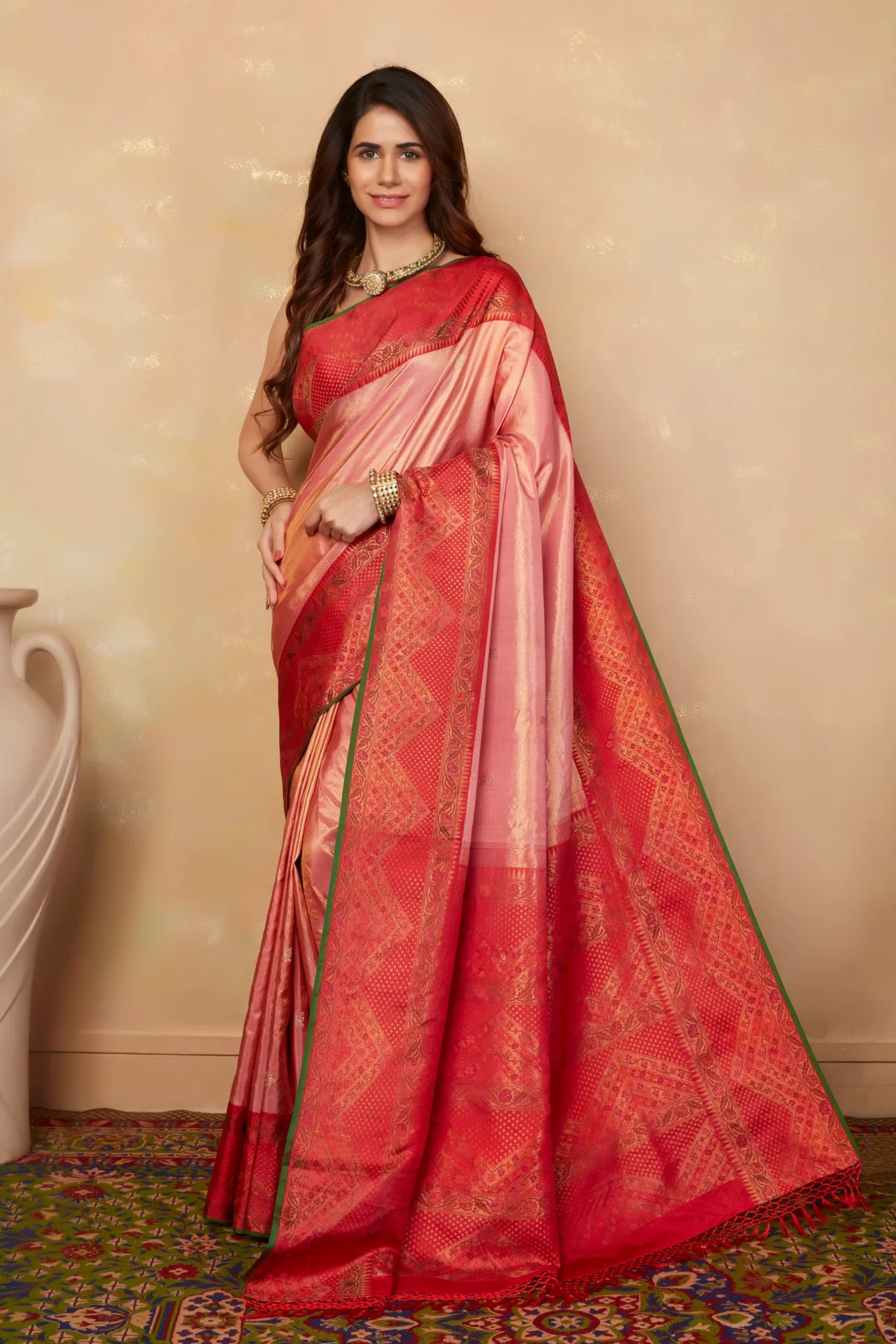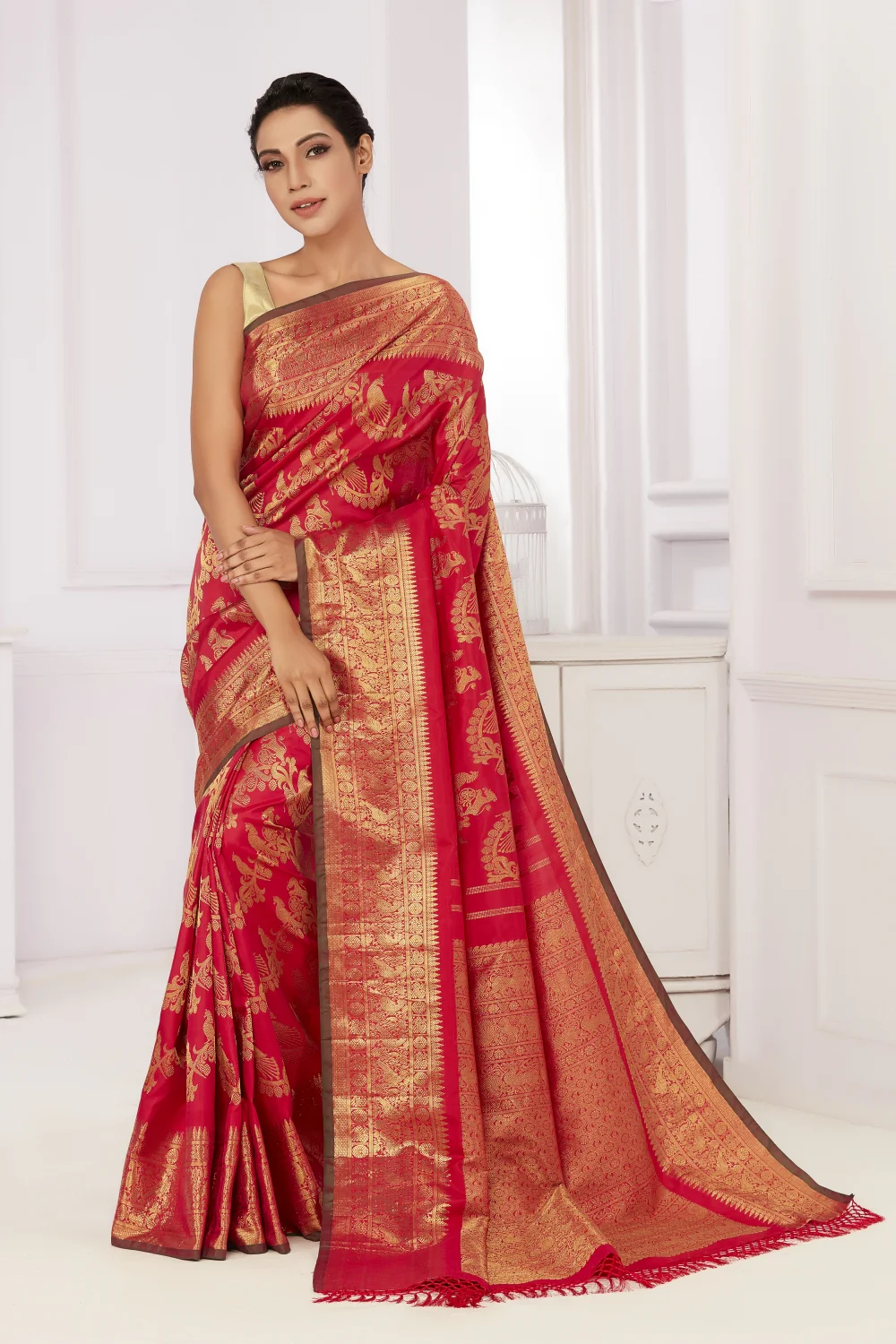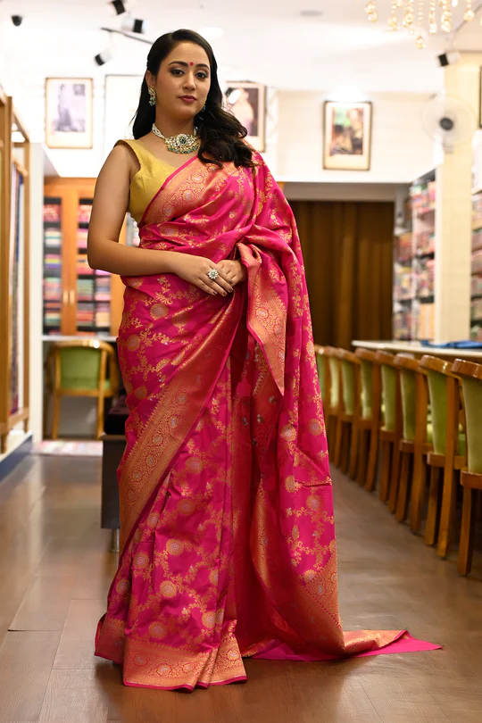 Rani Pink Color Katan Silk Woven Banarasi Silk Saree With Meena Work