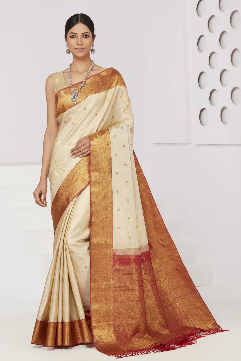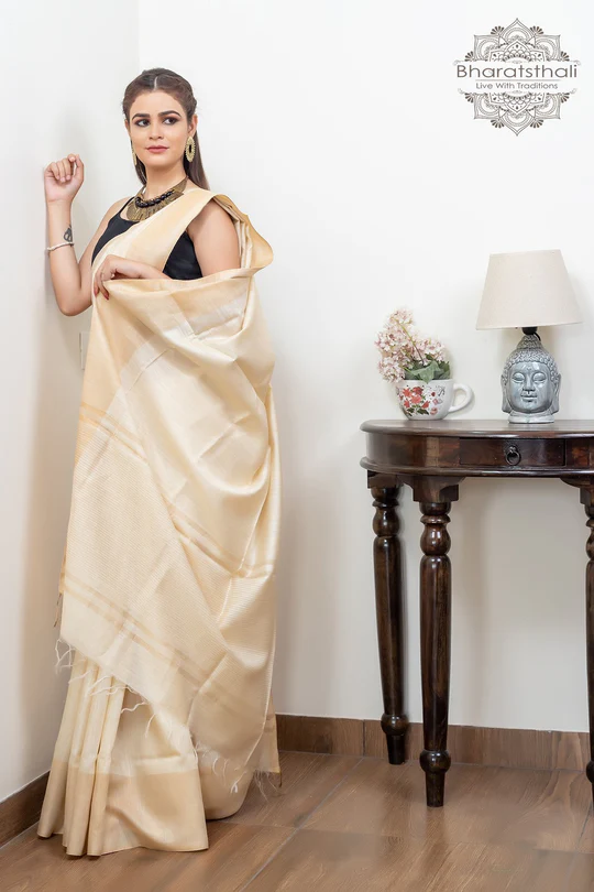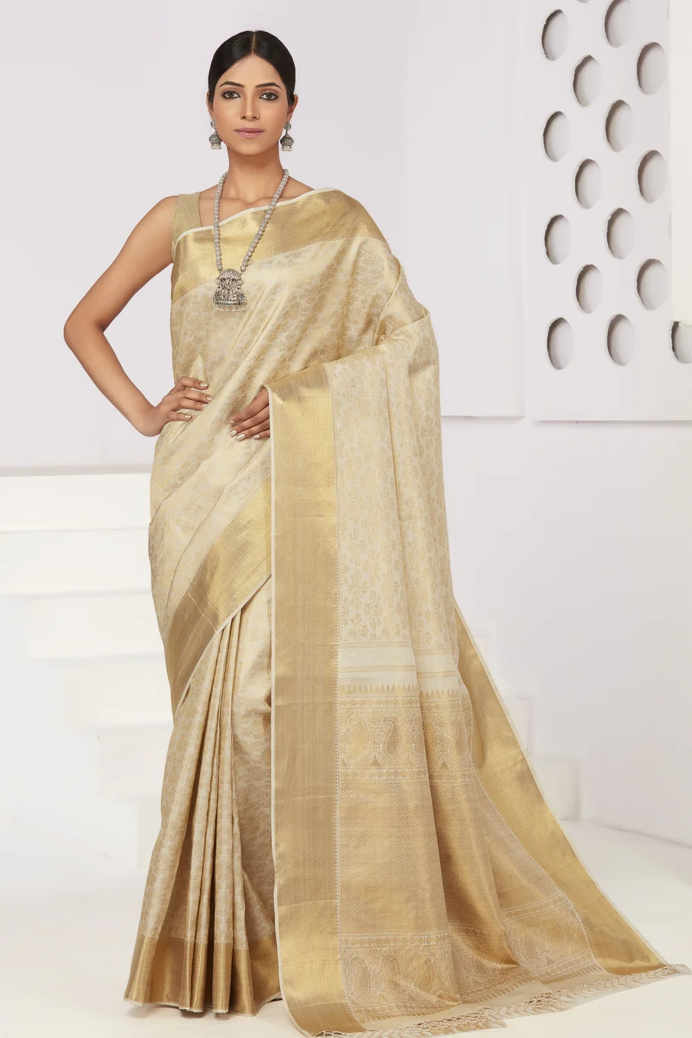 Cream Colour With Golden Border Pure Muga Silk Saree