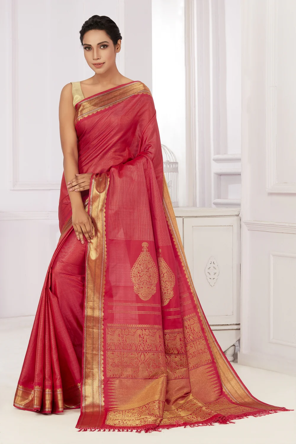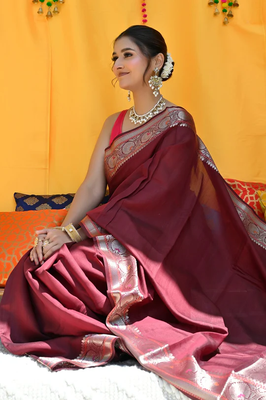 Big Broder Maroon Pure Mulberry Silk Handloom Saree