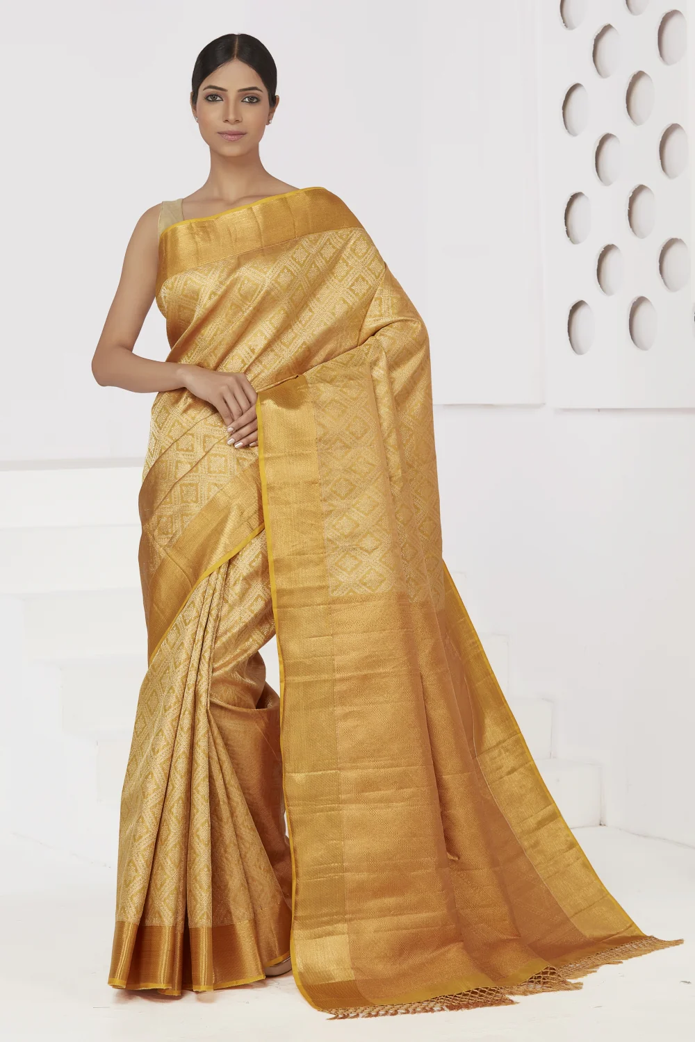 Mustard Yellow Color Handloom Pure Banarasi Silk Saree.